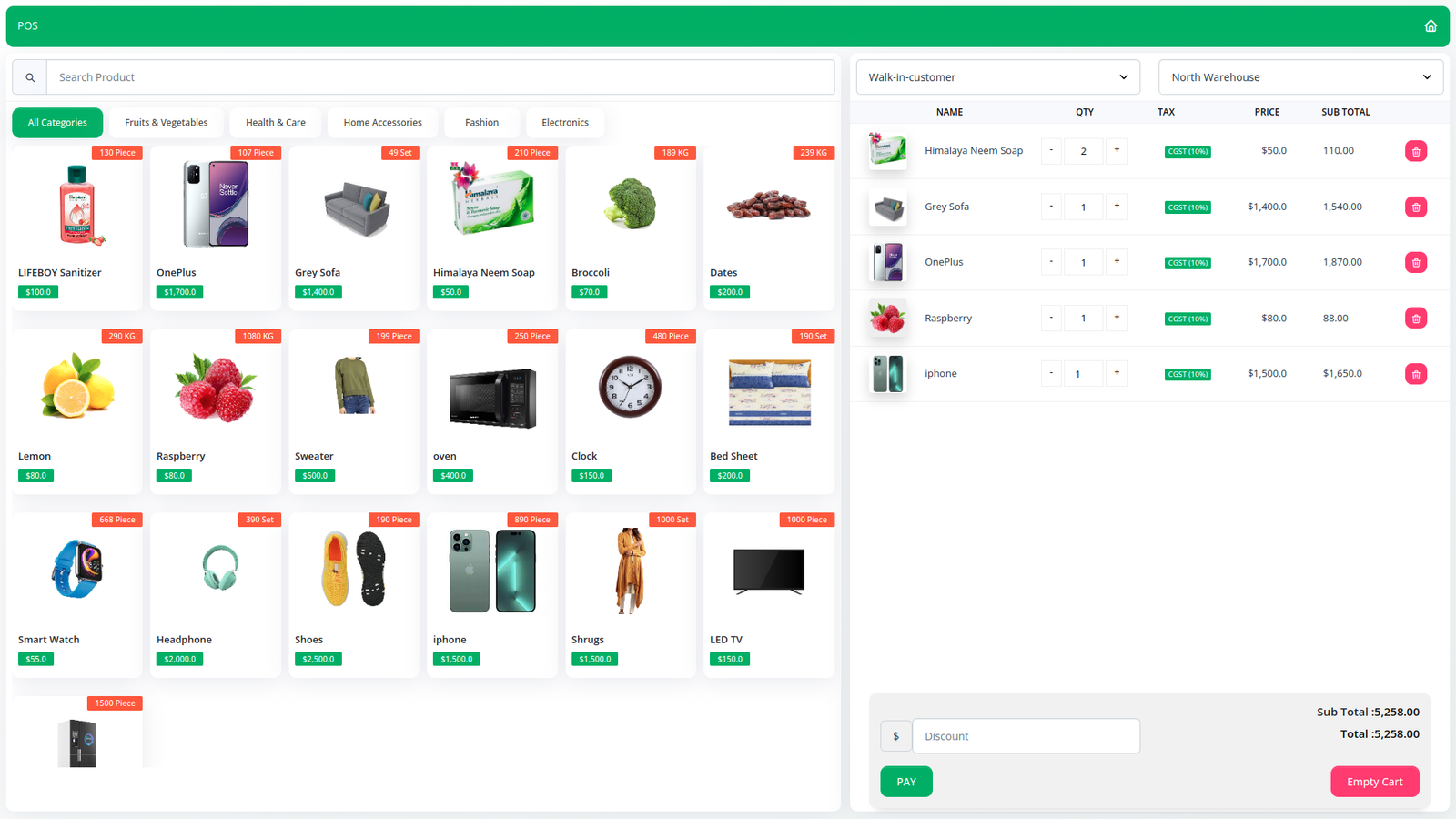 POS allows you to keep a tab on the total as well as the monthly amounts of sales and purchases. The interactive purchase sales report graph allows you to make informed decisions. You would receive notifications on the dashboard if products reach the minimum quantity.